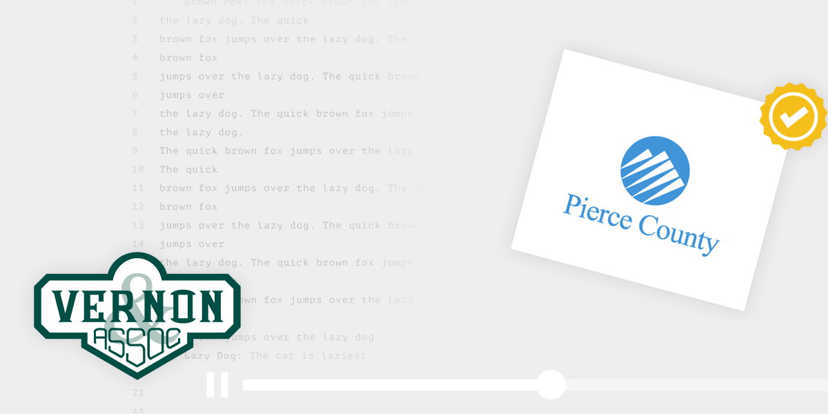 Vernon Court Reporters is an approved transcriptionist for Pierce County Superior Court in Tacoma, Washington. We are authorized to prepare verbatim transcripts of electronically recorded court proceedings under GR 35 and RAP 9.2, the Washington State rules that govern transcripts used for appeals.